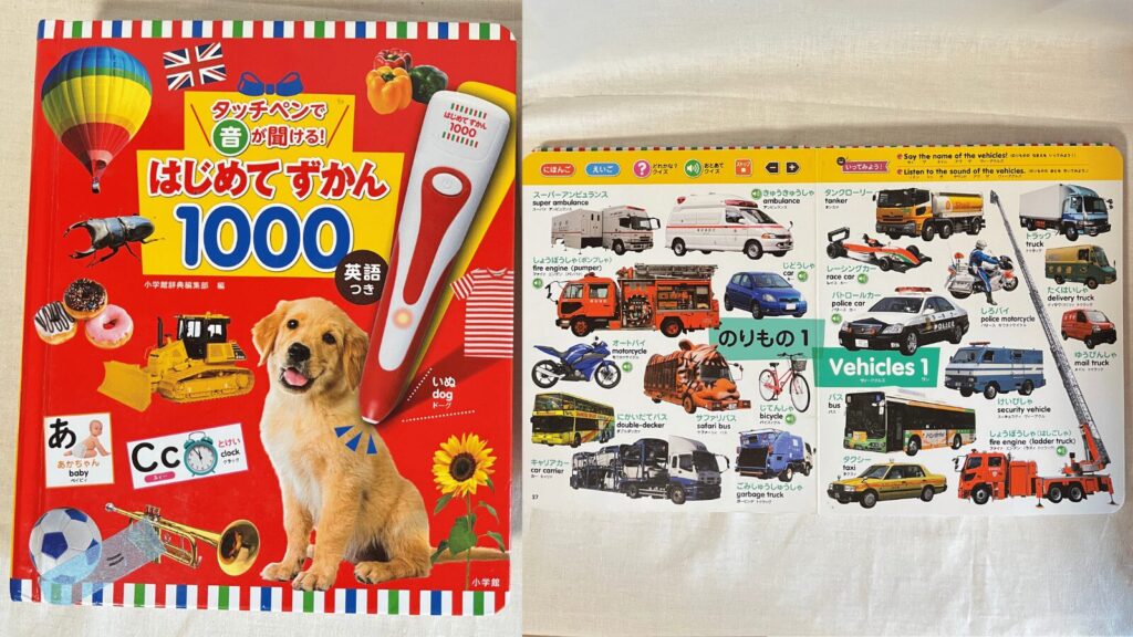 我が家では、日中は図鑑をメインに一緒に眺めて「これなに?」を楽しみ、