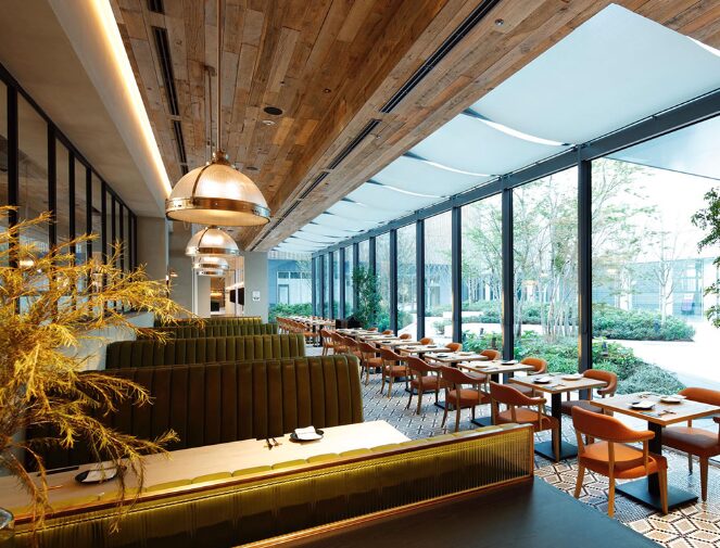 結婚式も行えるレストランからは中庭も望むことができ、15階という高層にあるため車の音なども気にすることがありません。毎回気持ちよく朝を迎えることができます。