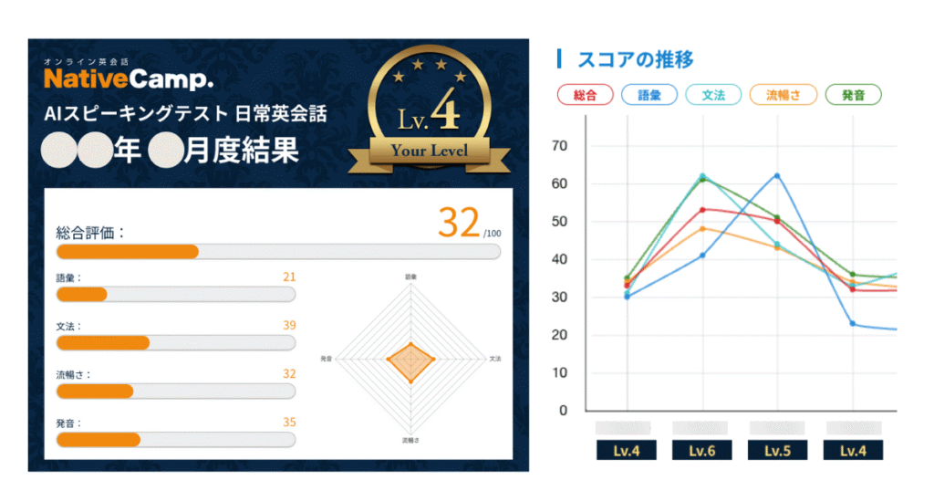 AIが自分のスピーキング力を審査して数値に表してくれるもので、毎月楽しく行いました。