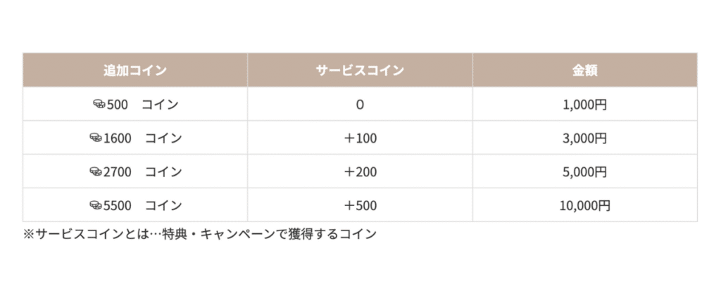 購入コイン数に応じてサービスコインが更に付いてきます。