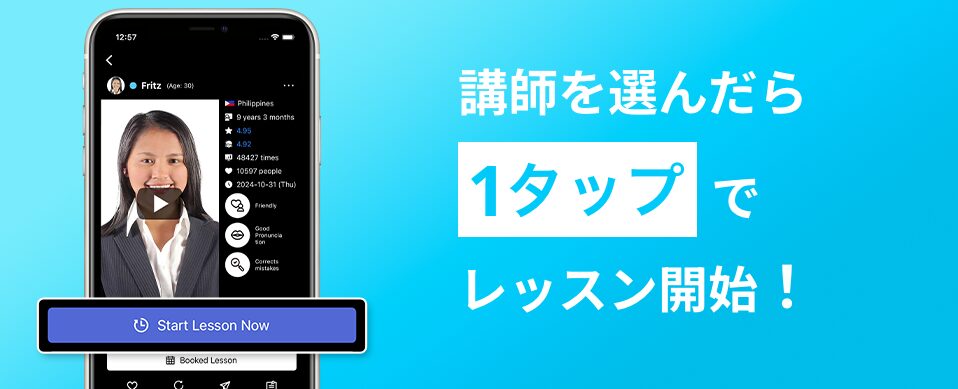 - 最短5分〜のレッスン受講が可能